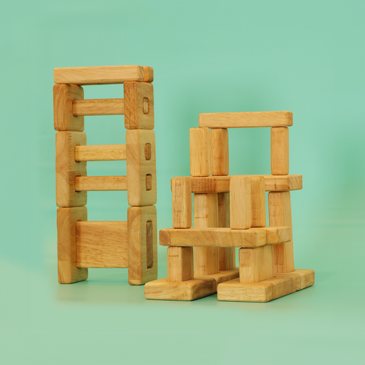 An interlocking slot design for lateral stacking, smooth rounded edges for ergonomic grasping and a challenging mix of straight as well as curved surfaces make learning through play an absolute joy